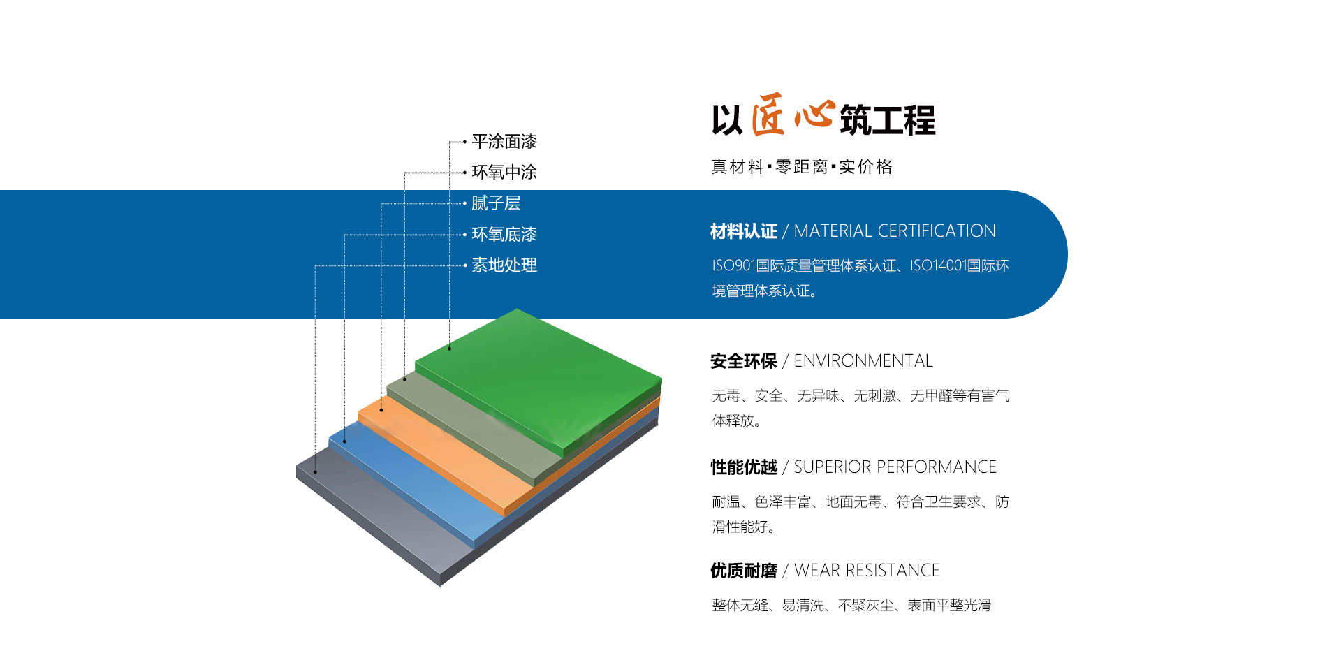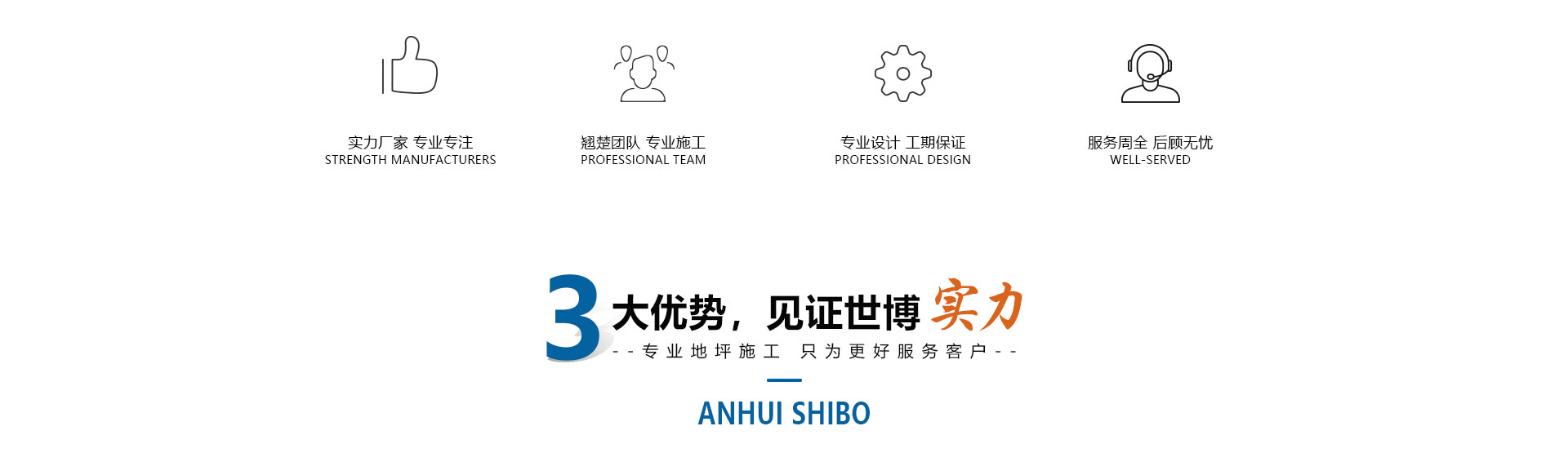 安徽世博裝飾工程有限公司成立于2009年,是一家以外墻涂料、工業(yè)地坪設(shè)計(jì)、施工和銷售為主要的專業(yè)性工程公司、是工業(yè)地坪施工的專業(yè)企業(yè)。公司設(shè)立了售后服務(wù)中心,用戶遍布全國(guó)大中小城市,一大批具有標(biāo)志性的長(zhǎng)期合作伙伴。“世博公司”環(huán)氧地坪工程,受到了越來(lái)越多的不同行業(yè)用戶的好評(píng)及青睞。公司擁有一批經(jīng)驗(yàn)豐富的管理人員和專業(yè)的施工人員,以保障產(chǎn)品的成功應(yīng)用,用較小的代價(jià)獲得理想的效果,尤其在地坪涂裝方面優(yōu)勢(shì)突出。而且以好的品質(zhì)管理模式,向客戶提供“獨(dú)具魅力”、“性能優(yōu)異”、“質(zhì)量穩(wěn)定”的產(chǎn)品。公司主要產(chǎn)品包括:平涂型環(huán)氧地坪、環(huán)氧砂漿地坪、環(huán)氧樹(shù)脂自流平地坪、滾涂型防靜電地坪、自流平防靜電地坪、復(fù)古地坪、水性環(huán)氧樹(shù)脂地坪、彩色透水混凝土地坪、壓花壓模藝術(shù)地坪、金剛砂耐磨硬化地坪、混凝土密封固化劑地坪、乙烯基酯重防腐地坪、GEP 標(biāo)準(zhǔn)型地坪、彈性PU運(yùn)動(dòng)場(chǎng)地坪、塑膠跑道地坪,PVC橡膠地板、停車場(chǎng)地坪、無(wú)震...